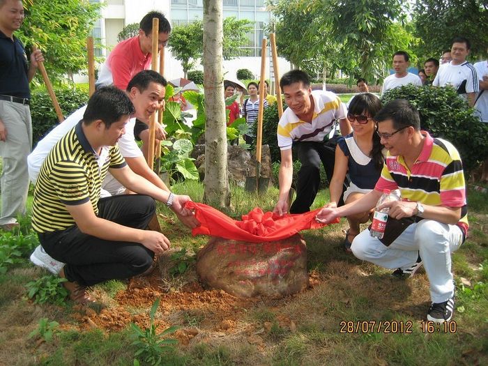 为祝福母校建校八十周年庆典,校友们还在雁山校区捐种了爱心树,在纪念石上刻上:祝福母校,根深叶茂。