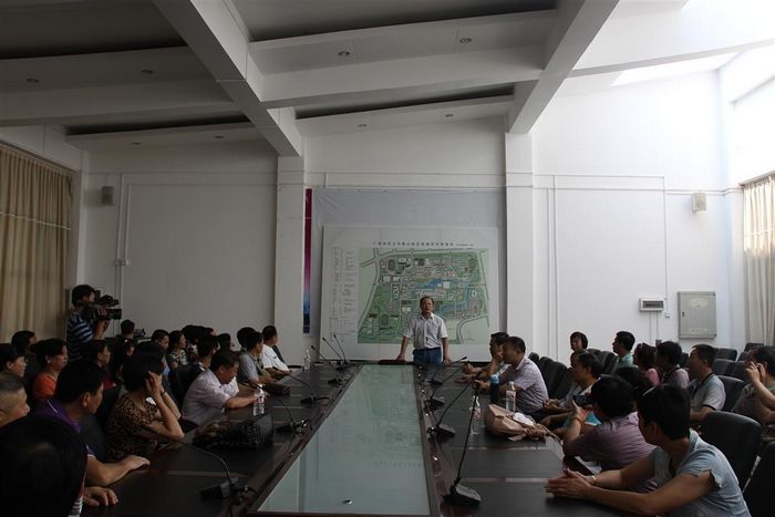 校友们在听取雁山校区的规划、建设情况介绍