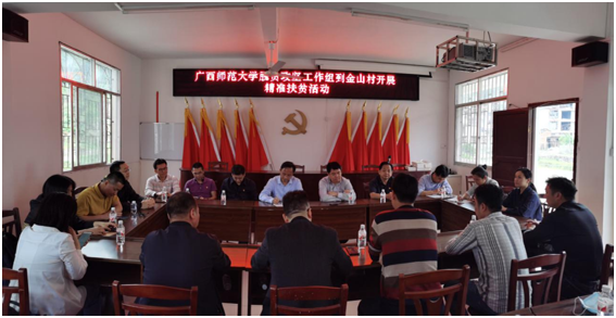 此次对口帮扶活动,学校以及后盾单位给资源县金山村筹措了20万元的捐款,用于资助金山村土鸡养殖项目和活动场地硬化项目,捐赠仪式在座谈会上举行。工作队成员、资源县资源镇领导、金山村村干部、驻村扶贫第一书记等近30人参加了座谈。