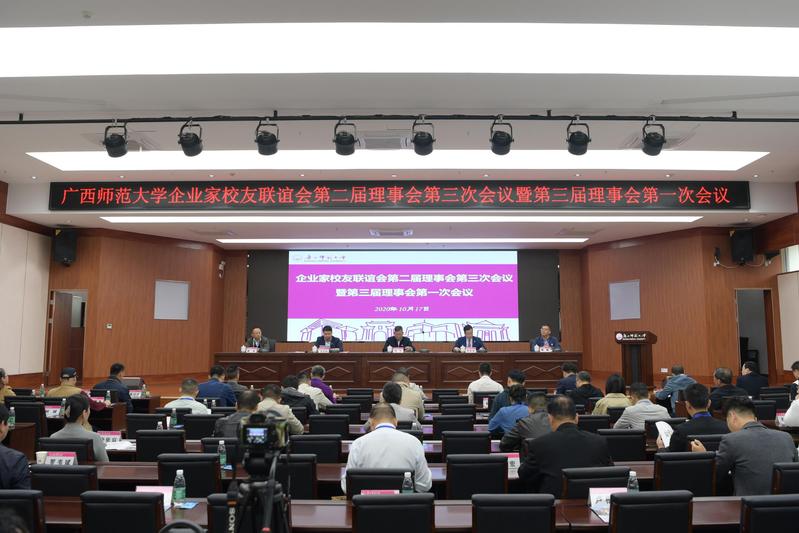 10月17日上午,我校企业家校友联谊会第二届理事会第三次会议暨第三届理事会第一次会议在育才校区国际交流中心2号楼2楼报告厅隆重举行。校党委书记、校友会名誉会长邓军,校长、校友会会长贺祖斌等校领导出席了会议,参加会议的还有来自全国各地的校友代表、企业家校友联谊会理事、校友办工作人员及学校其它相关职能部门负责人。