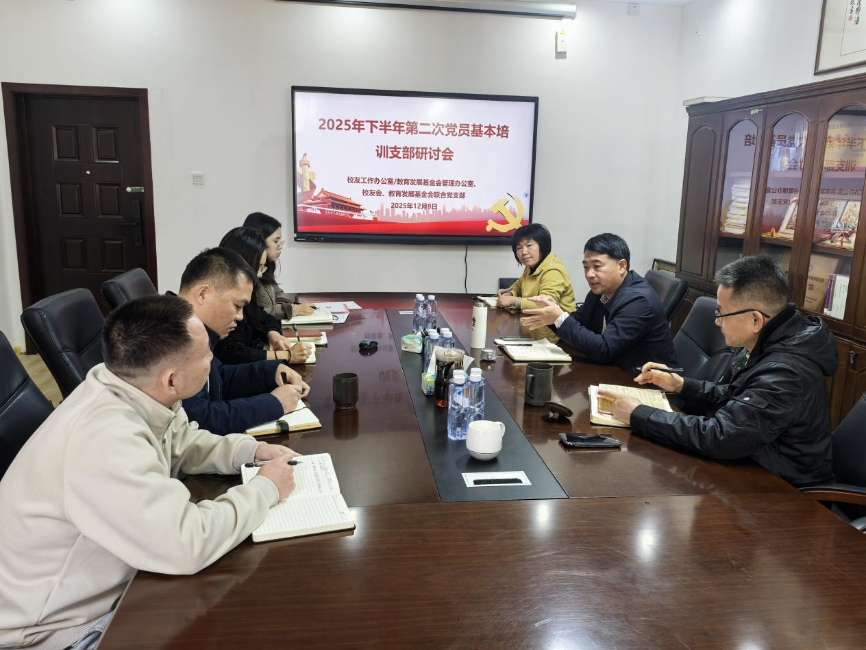 12月8日,校友工作办公室/教育发展基金会管理办公室、校友会、教育发展基金会联合党支部召开专题会议,针对学校举行2025年全校师生党员基本培训下半年第二次集中大课的重要内容开展研讨。会议由支部书记主持,全体党员参加。