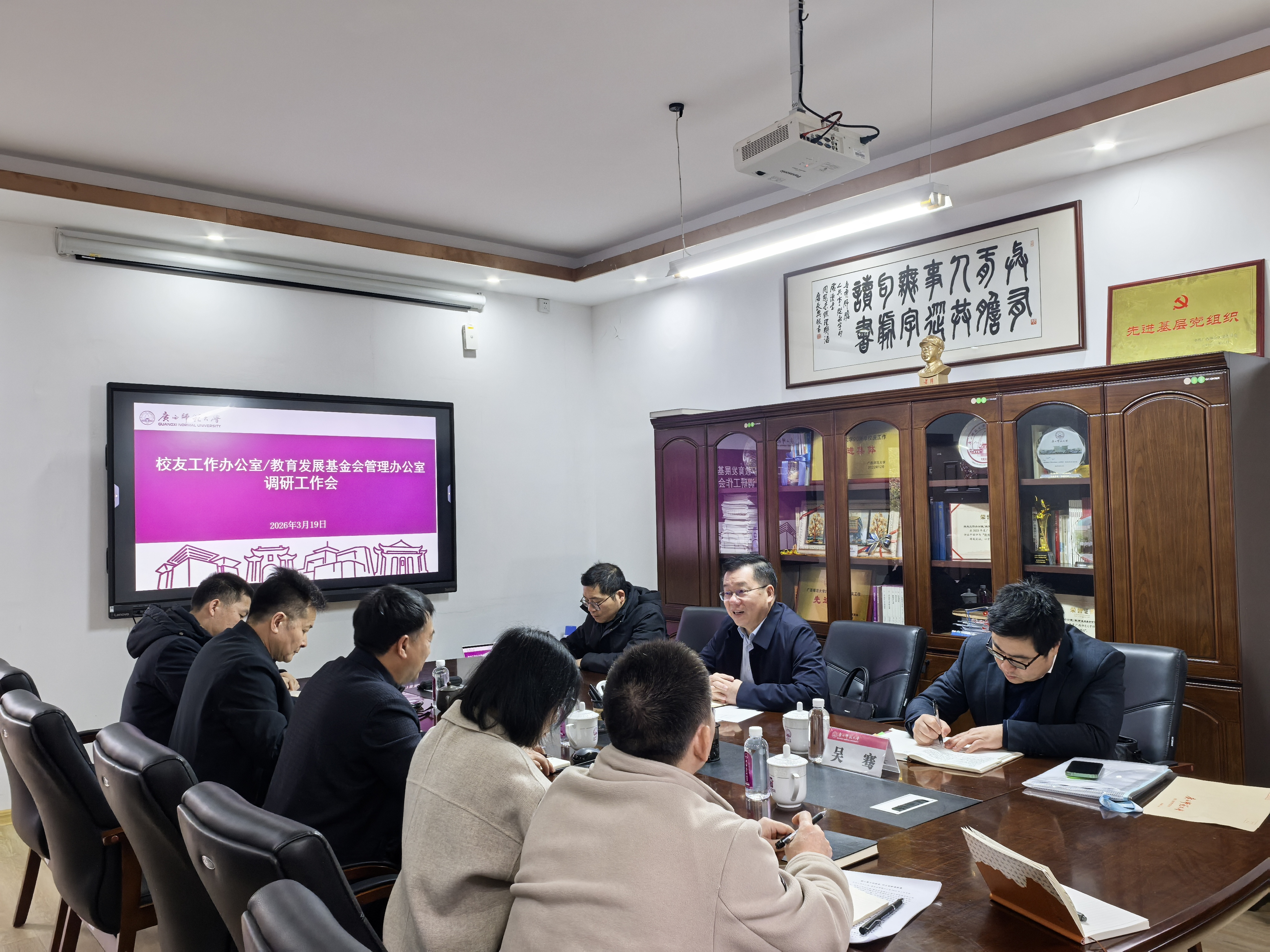 3月19日上午,校党委书记贺祖斌到校友工作办公室/教育发展基金会管理办公室调研指导工作。