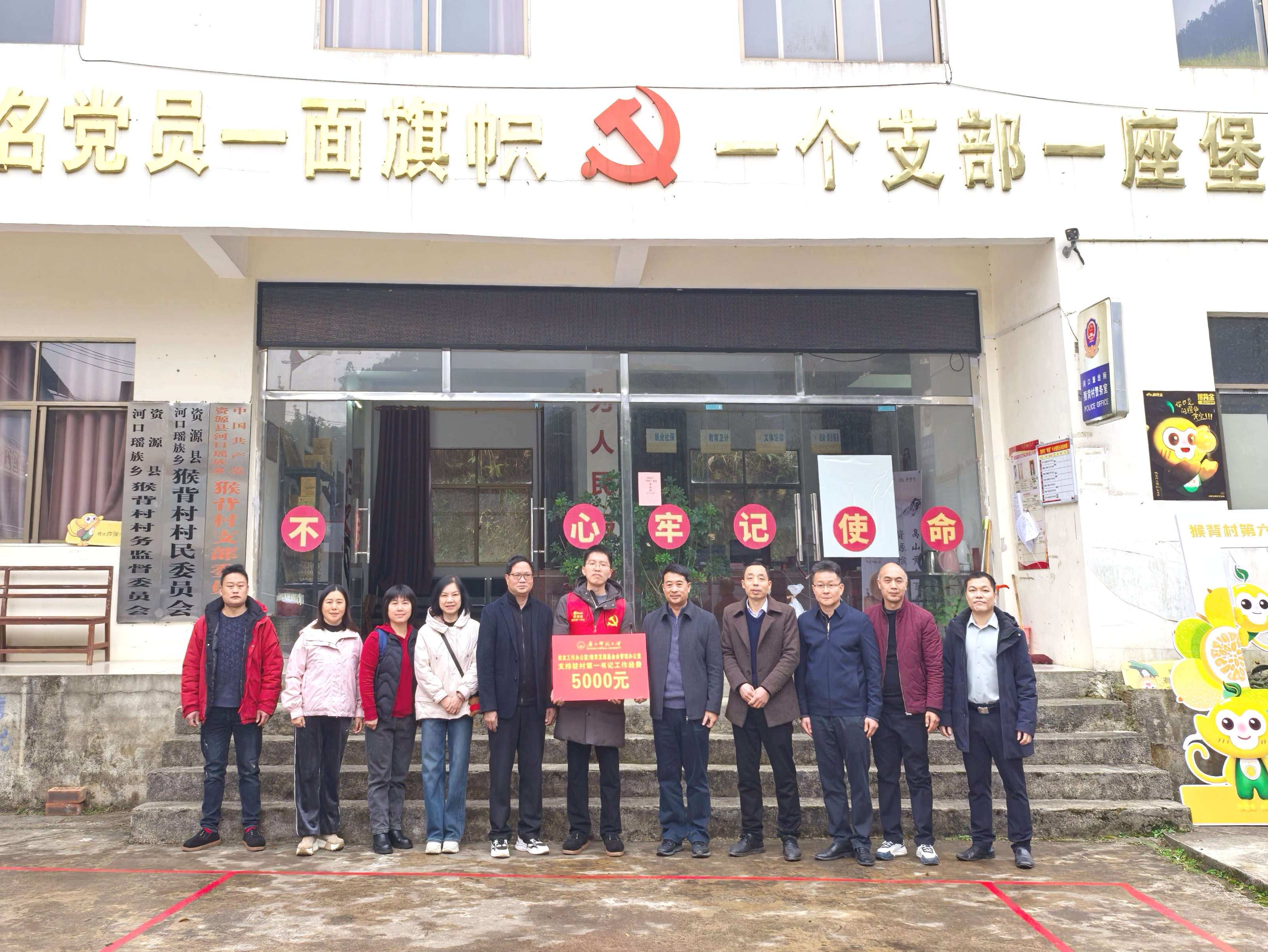 为深入学习贯彻党的二十届四中全会精神,扎实推进巩固拓展脱贫攻坚成果同乡村振兴有效衔接,1月16日,校友工作办公室/教育发展基金会管理办公室一行赴资源县河口瑶族乡猴背村开展乡村振兴帮扶活动。资源县河口瑶族乡党委书记、猴背村“两委”成员及驻村工作队员共同参加相关活动。